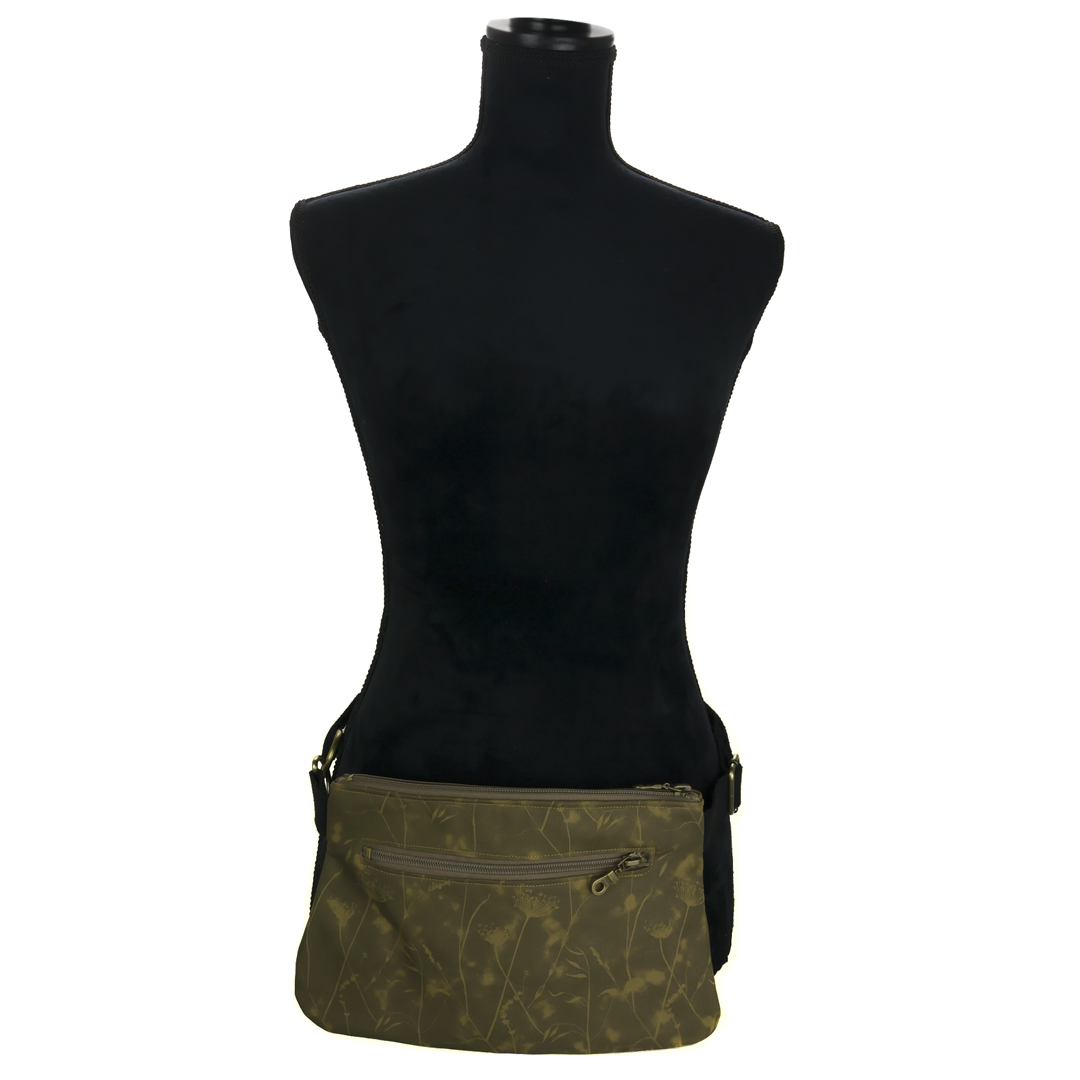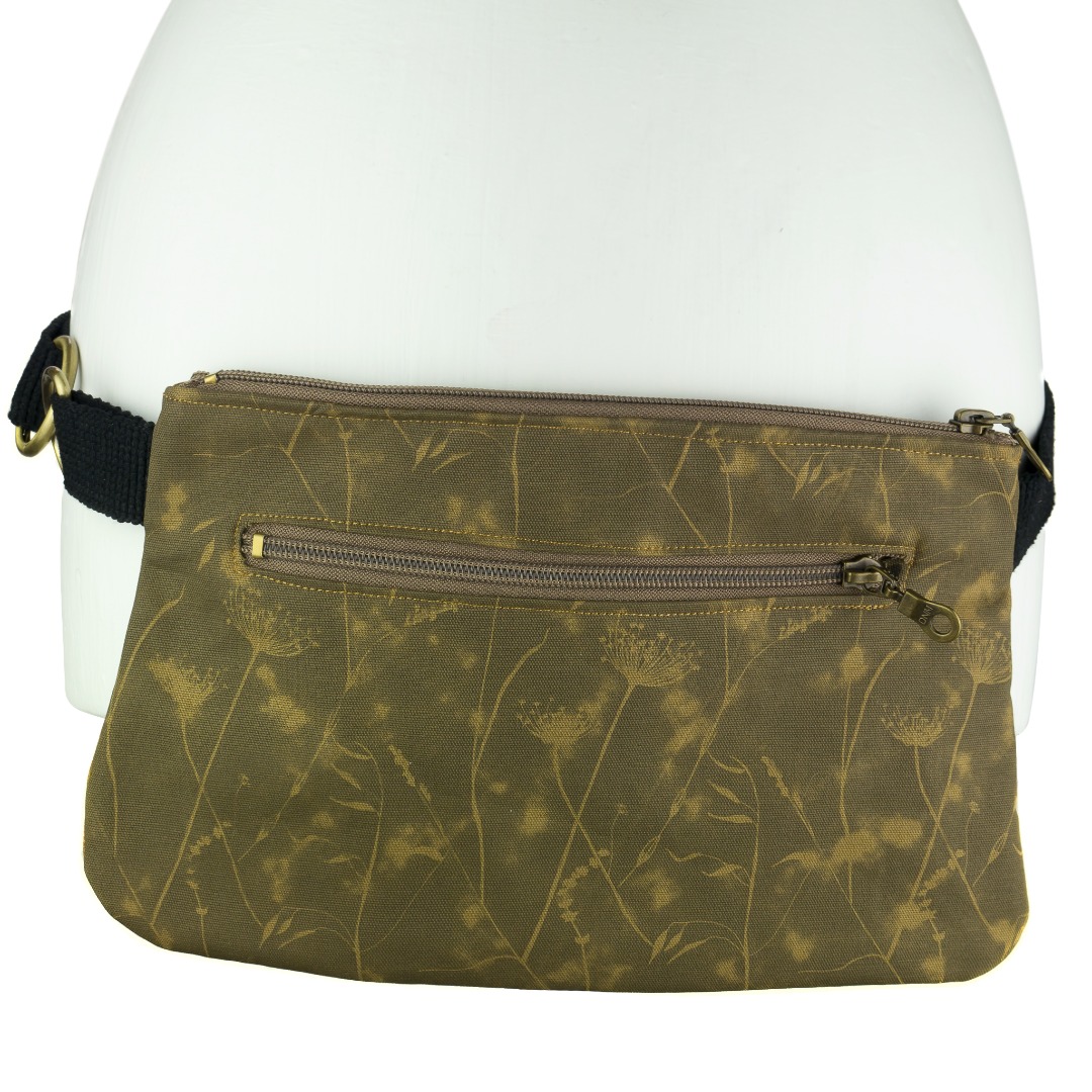 This easy breezy summer bag will add effortless style to your everyday looks. Practical, yet stylish, the bag has 2 zippered pockets and a cotton strap that can easily be length adjusted. The front of the bag is cotton screen printed by hand* shile the back is monochrome cotton fabric.