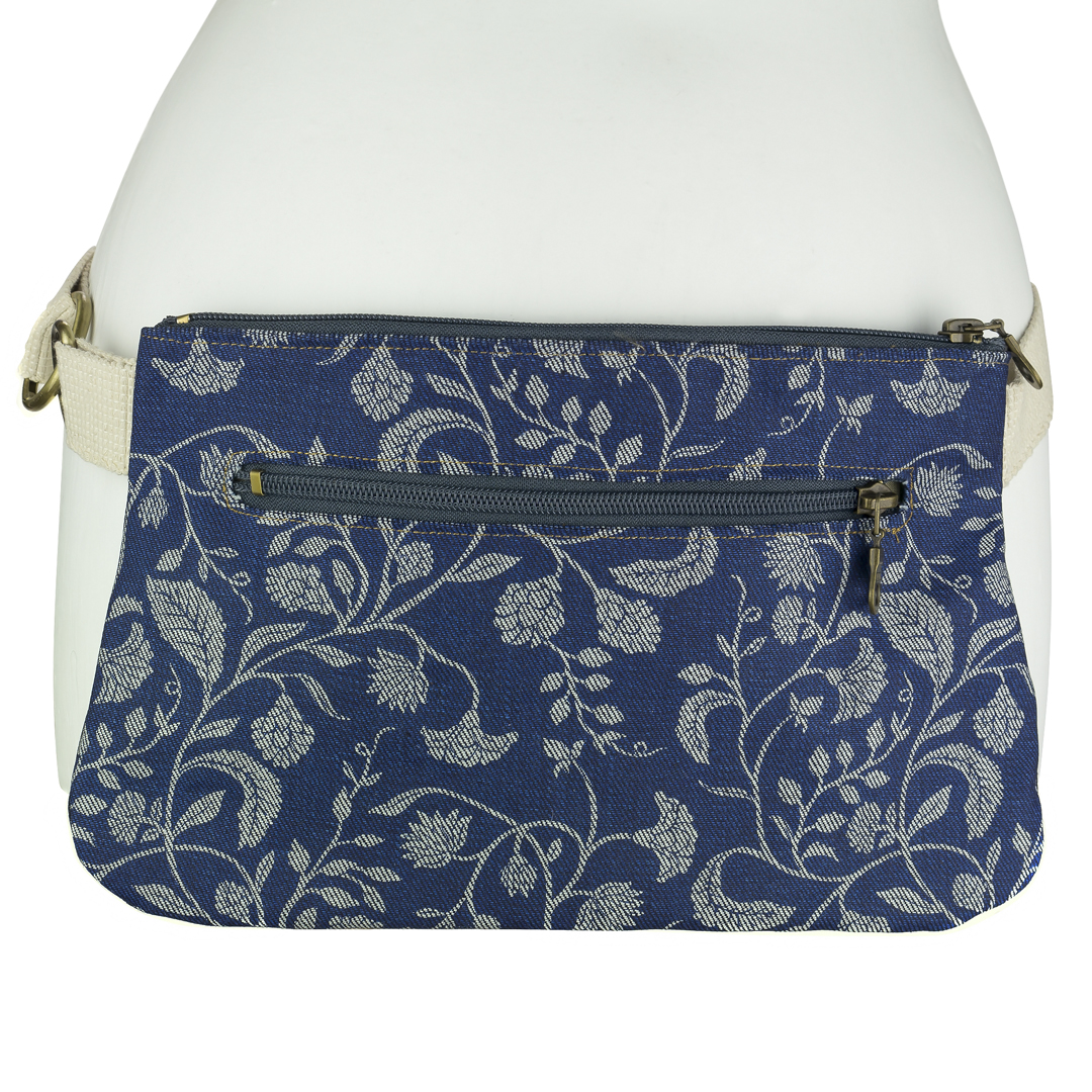 This easy breezy summer bag will add effortless style to your everyday looks. Practical, yet stylish, the bag has 2 zippered pockets and a cotton strap that can easily be length adjusted. The front of the bag is cotton screen printed by hand* shile the back is monochrome cotton fabric.