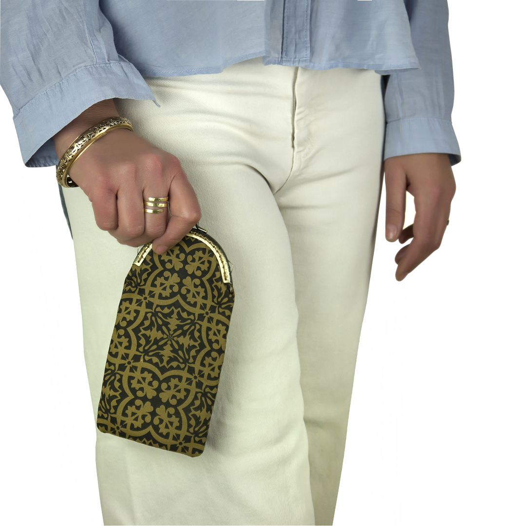 Ρομαντική θήκη γυαλιών από τυπωμένο* ύφασμα. Εσωτερικά έχει μαλακή προστατευτική ενίσχυση αφού είναι φοδραρισμένη με πολυεστερικό καπιτονέ ύφασμα και βάτα.