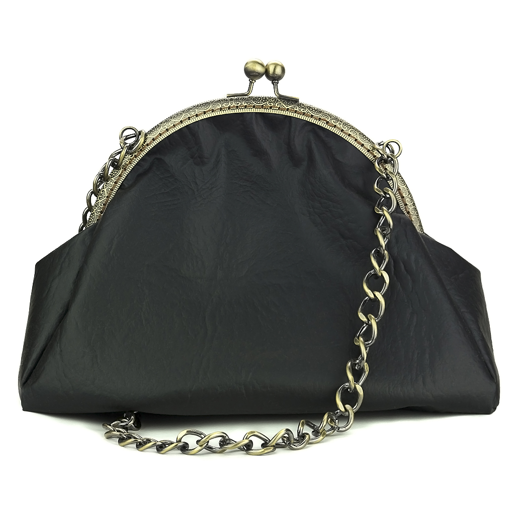 Το Awesome Clutch έχει ύψος περίπου 20 cm, άνοιγμα στο κάτω μέρος 28 και το πλαϊνό τμήμα που δίνει το βάθος 10cm. Tο άνοιγμα του κλείστρου είναι 20 cm και είναι ραμμένο στο χέρι βελονιά βελονιά. To Awesome Clutch φέρει αλυσίδα μήκους 65 εκ και μπορεί να φορεθεί στον ώμο ή να κρατηθεί στο χέρι.