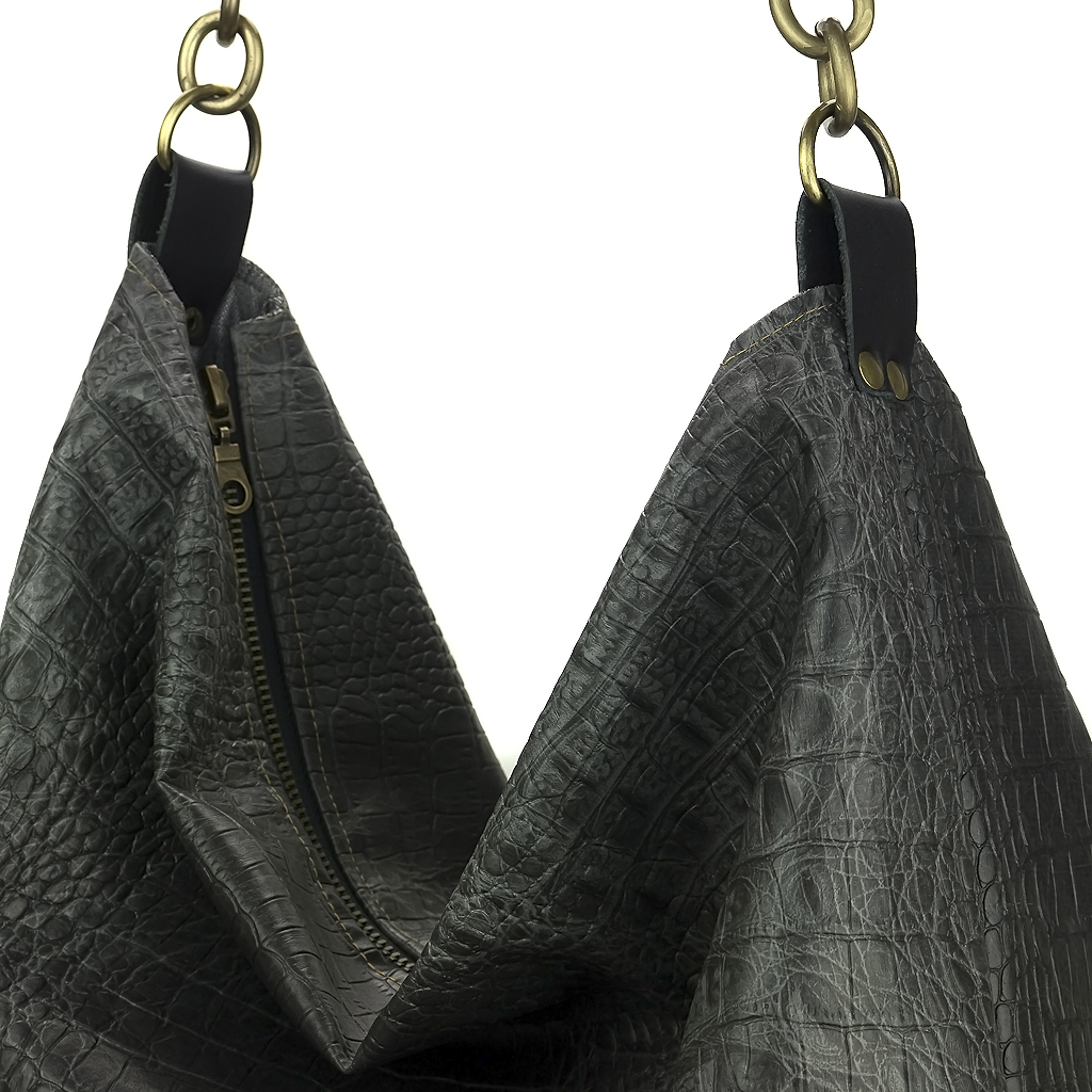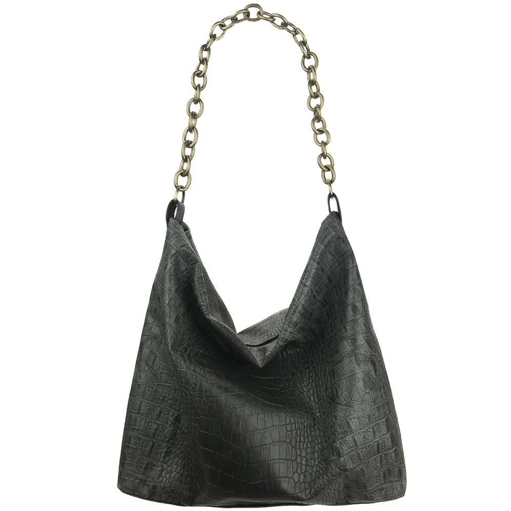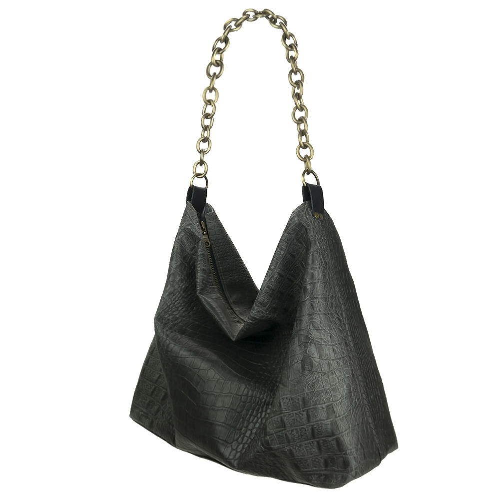 Η Sweet Bag είναι μια μεγάλη και άνετη τσάντα για όλες τις ώρες. Κλείνει με ανθεκτικό φερμουάρ στο επάνω μέρος και φέρει μια τσέπη με φερμουάρ εσωτερικά στη φόδρα. Η αλυσίδα είναι εντυπωσιακή, ελαφριά και άνετη μιας και είναι από αλουμίνιο. Διαστάσεις: ύψος 35, πλάτος 38, βάθος 12.