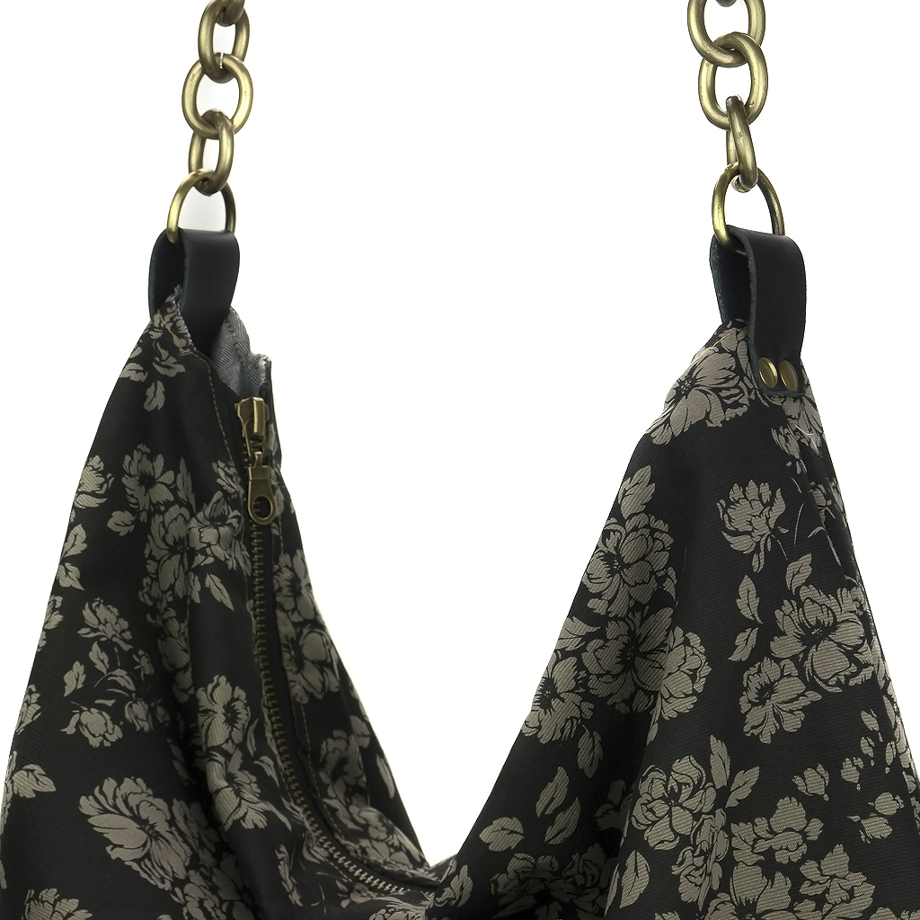 Η Sweet Bag είναι μια μεγάλη και άνετη τσάντα για όλες τις ώρες. Η συγκεκριμένη είναι κατασκευασμένη από βαμβακερό ύφασμα τυπωμένο στο χέρι με οικολογικά μελάνια νερού*. Κλείνει με ανθεκτικό φερμουάρ στο επάνω μέρος και φέρει μια τσέπη με φερμουάρ εσωτερικά στη φόδρα. Η αλυσίδα είναι εντυπωσιακή, ελαφριά και άνετη μιας και είναι από αλουμίνιο. Διαστάσεις: ύψος 35, πλάτος 38, βάθος 12.
