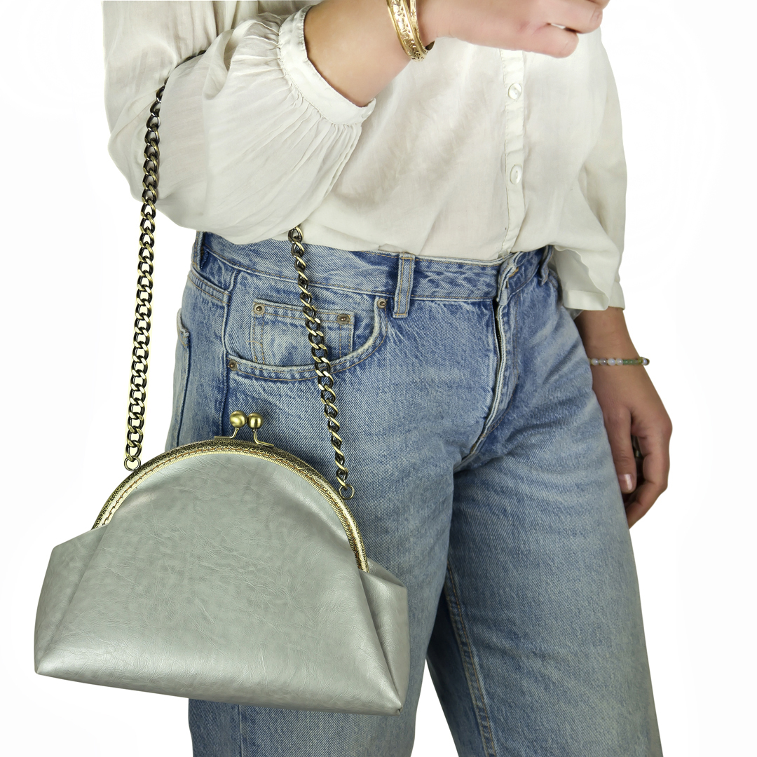 Το Awesome Clutch έχει ύψος περίπου 20 cm, άνοιγμα στο κάτω μέρος 28 και το πλαϊνό τμήμα που δίνει το βάθος 10cm. Tο άνοιγμα του κλείστρου είναι 20 cm και είναι ραμμένο στο χέρι βελονιά βελονιά. To Awesome Clutch φέρει αλυσίδα μήκους 65 εκ και μπορεί να φορεθεί στον ώμο ή να κρατηθεί στο χέρι.