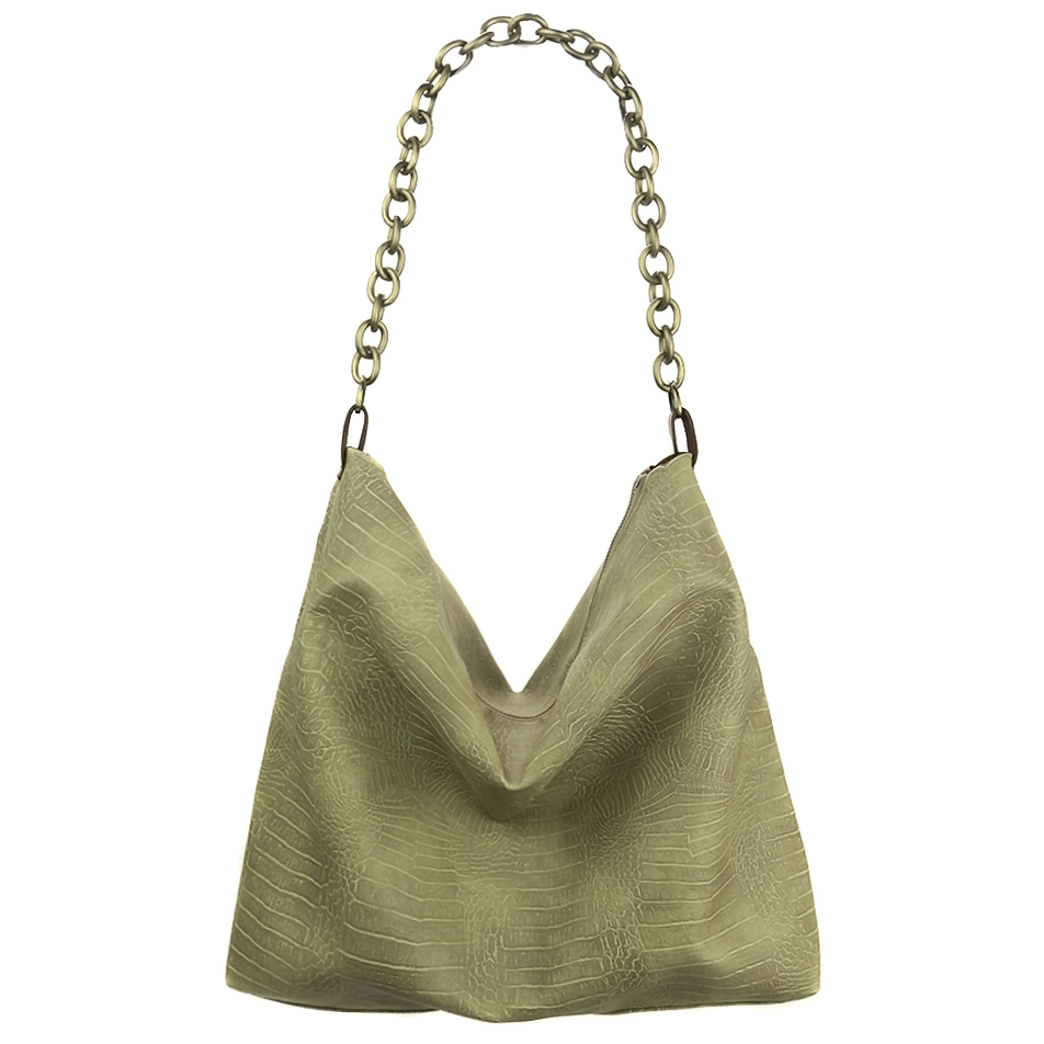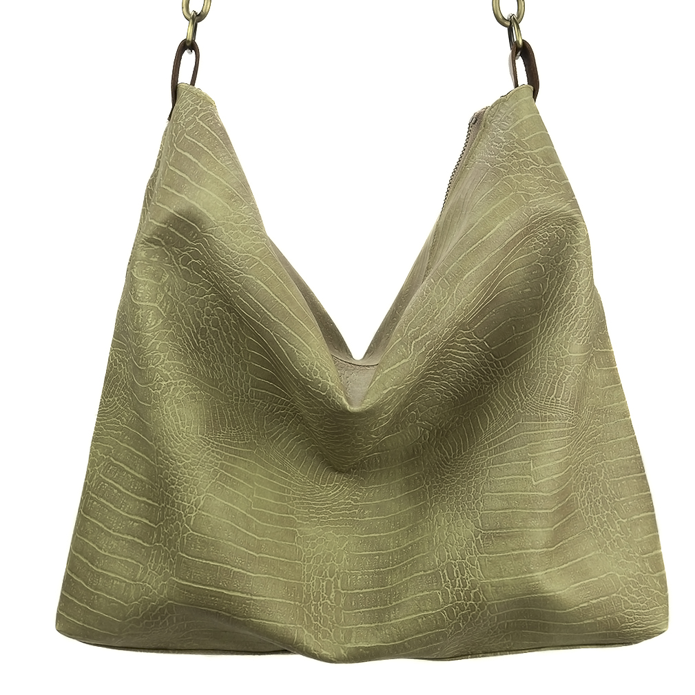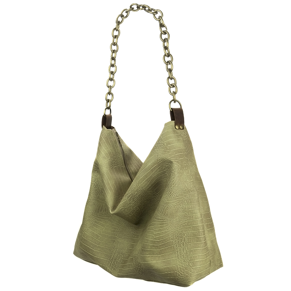 Η Sweet Bag είναι μια μεγάλη και άνετη τσάντα για όλες τις ώρες. Κλείνει με ανθεκτικό φερμουάρ στο επάνω μέρος και φέρει μια τσέπη με φερμουάρ εσωτερικά στη φόδρα. Η αλυσίδα είναι εντυπωσιακή, ελαφριά και άνετη μιας και είναι από αλουμίνιο. Διαστάσεις: ύψος 35, πλάτος 38, βάθος 12.