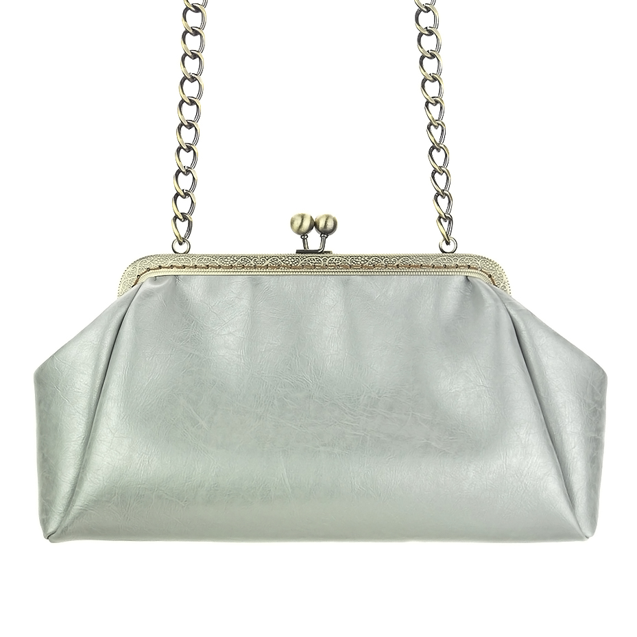 To Elegance Clutch κάνει κομψότερη την έξοδό σας, αφού έχετε μαζί σας ότι χρειάζεστε με στιλ, μειώνοντας τον όγκο. Το ύψος της τσάντας είναι 17 cm και το πλαϊνό τμήμα που δίνει το βάθος 11cm. Tο άνοιγμα του κλείστρου είναι 20 cm και είναι ραμμένο στο χέρι βελονιά βελονιά