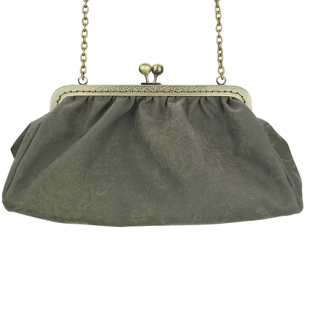 To Elegance Clutch κάνει κομψότερη την έξοδό σας, αφού έχετε μαζί σας ότι χρειάζεστε με στιλ, μειώνοντας τον όγκο. Το ύψος της τσάντας είναι 17 cm και το πλαϊνό τμήμα που δίνει το βάθος 11cm. Tο άνοιγμα του κλείστρου είναι 20 cm και είναι ραμμένο στο χέρι βελονιά βελονιά. To Elegance Clutch φέρει αλυσίδα μήκους 65 εκ.